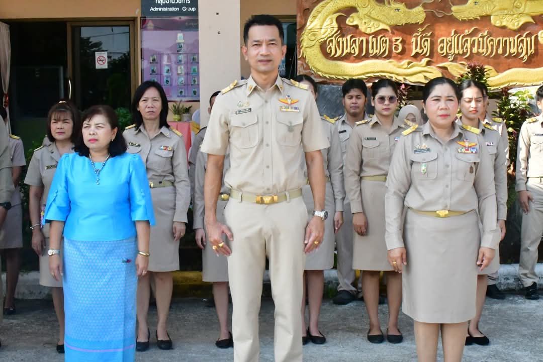 | วันที่ 4 สิงหาคม 2568 เวลา 08.30 น. นายศังกร รักชูชื่น ผอ.สพป.สงขลา เขต 3 มอบหมายให้นางอำภา เวชสารศรี นายอัษฎาวุธ สุวัตถี รอง ผอ.สพป.สงขลา เขต 3 พร้อมด้วย ผอ.กลุ่ม/หน่วย และบุคลากร สพป.สงขลา เขต 3 ร่วมทำกิจกรรมหน้าเสาธง เคารพธงชาติ ร้องเพลงจำขึ้นใจ เพื่อส่งเสริมการแสดงถึงความจงรักภักดีต่อสถาบันพระมหากษัตริย์ เทิดทูนสถาบันสำคัญของชาติ ปลุกจิตสำนึก ค่านิยม อุดมการณ์ปกป้องสถาบันชาติ ศาสนา และพระมหากษัตริย์ เป็นแบบอย่างที่ดี ตระหนักและเห็นคุณค่าของความเป็นชาติ สร้างความรัก ความสามัคคีในหน่วยงาน สร้างวินัย และรักษาเอกลักษณ์ของชาติ กล่าวคำปฎิญญา สำนักงานเขตพื้นที่การศึกษาสุจริต โดยพร้อมเพรียงกัน รณรงค์ต่อต้านการทุจริต ปลุกจิตสำนึกการปฏิบัติตามนโยบายการไม่รับของขวัญ และของกำนันทุกชนิดจากการปฏิบัติหน้าที่ (No Gif Policy) ประจำปีงบประมาณ พ.ศ.2568 และแนวปฏิบัติ Do’s & Don’ts เพื่อลดความสับสนเกี่ยวกับพฤติกรรมสีเทา และเป็นแนวทางประพฤติปฏิบัติตนทางจริยธรรม ที่ สพป.สงขลา เขต 3 ได้จัดทำไว้ให้ถือปฏิบัติมาโดยตลอด รอง ผอ.สพป.สงขลา เขต 3 พบปะ แจ้งข้อราชการ ณ ลานหน้าเสาธง สพป.สงขลา เขต 3 อ.นาทวี จ.สงขลา |