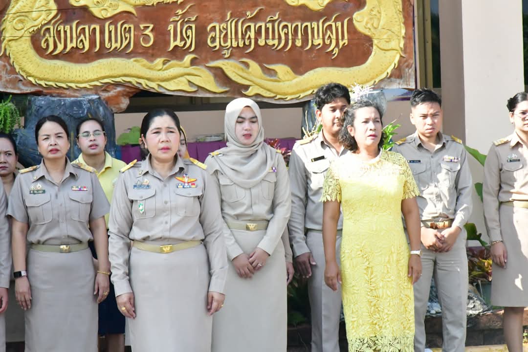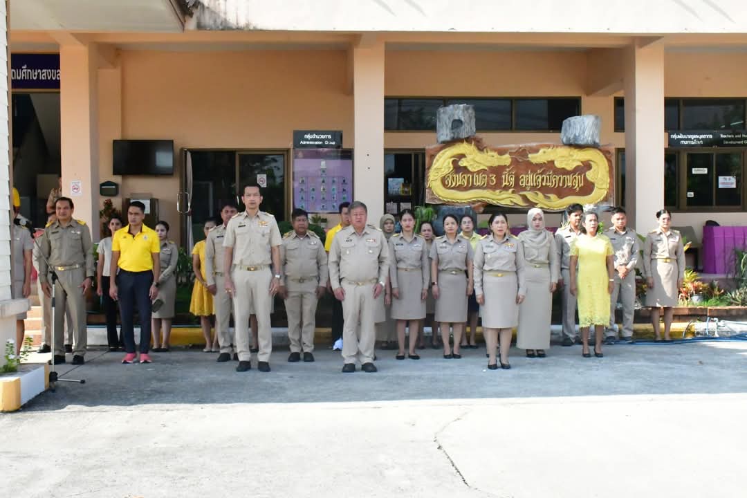 | วันที่ 18 สิงหาคม 2568 เวลา 08.30 น. นายศังกร รักชูชื่น ผอ.สพป.สงขลา เขต 3 พร้อมด้วยนางอำภา เวชสารศรี นายอัษฎาวุธ สุวัตถี รอง ผอ.สพป.สงขลา เขต 3 ผอ.กลุ่ม/หน่วย และบุคลากร สพป.สงขลา เขต 3 ร่วมทำกิจกรรมหน้าเสาธง เคารพธงชาติ ร้องเพลงจำขึ้นใจ เพื่อส่งเสริมการแสดงถึงความจงรักภักดีต่อสถาบันพระมหากษัตริย์ เทิดทูนสถาบันสำคัญของชาติ ปลุกจิตสำนึก ค่านิยม อุดมการณ์ปกป้องสถาบันชาติ ศาสนา และพระมหากษัตริย์ เป็นแบบอย่างที่ดี ตระหนักและเห็นคุณค่าของความเป็นชาติ สร้างความรัก ความสามัคคีในหน่วยงาน สร้างวินัย และรักษาเอกลักษณ์ของชาติ กล่าวคำปฎิญญา สำนักงานเขตพื้นที่การศึกษาสุจริต โดยพร้อมเพรียงกัน รณรงค์ต่อต้านการทุจริต ปลุกจิตสำนึกการปฏิบัติตามนโยบายการไม่รับของขวัญ และของกำนันทุกชนิดจากการปฏิบัติหน้าที่ (No Gif Policy) ประจำปีงบประมาณ พ.ศ.2568 และแนวปฏิบัติ Do’s & Don’ts เพื่อลดความสับสนเกี่ยวกับพฤติกรรมสีเทา และเป็นแนวทางประพฤติปฏิบัติตนทางจริยธรรม ที่ สพป.สงขลา เขต 3 ได้จัดทำไว้ให้ถือปฏิบัติมาโดยตลอด ผอ.สพป.สงขลา เขต 3 พบปะ แจ้งข้อราชการ ณ ลานหน้าเสาธง สพป.สงขลา เขต 3 อ.นาทวี จ.สงขลา |