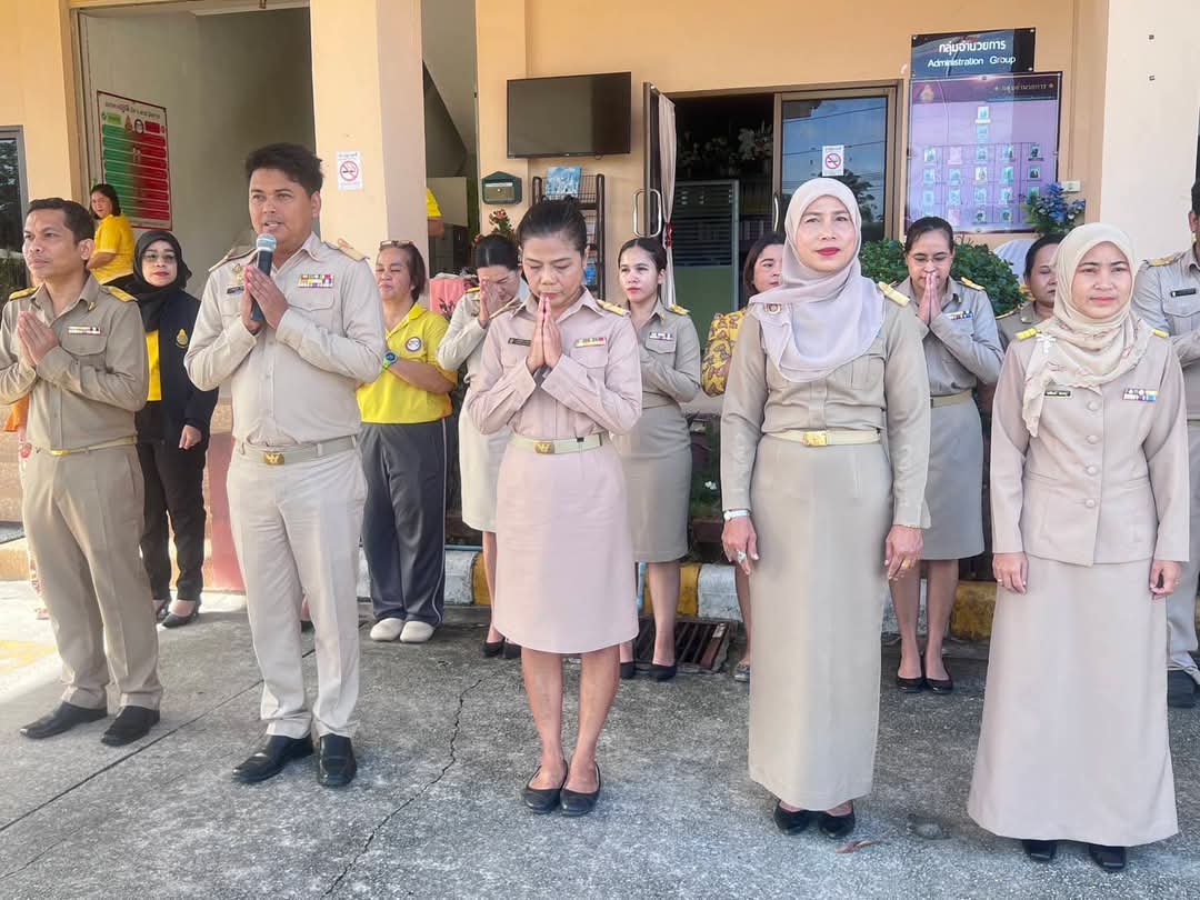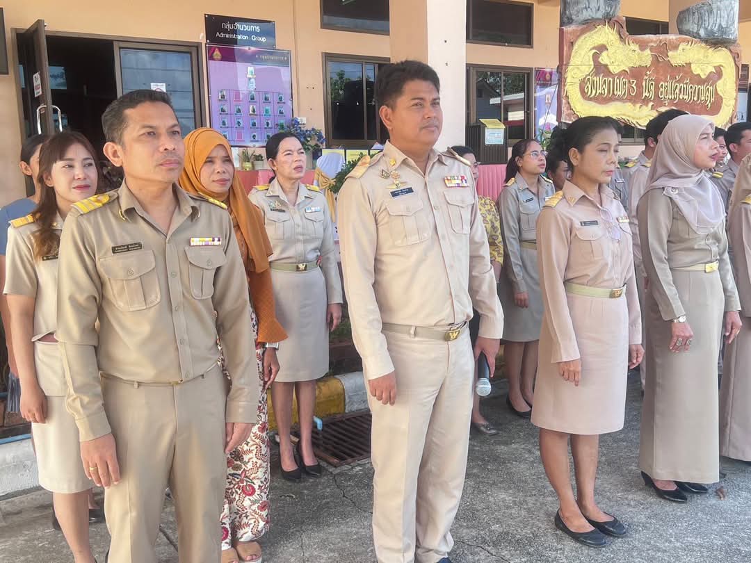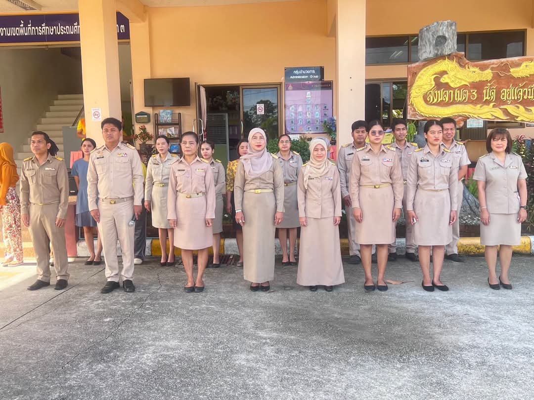 | วันที่ 1 กันยายน 2568 เวลา 08.30 น. นายศังกร รักชูชื่น ผอ.สพป.สงขลา เขต 3 มอบหมายให้บุคลากร สพป.สงขลา เขต 3 ร่วมทำกิจกรรมหน้าเสาธง เคารพธงชาติ ร้องเพลงจำขึ้นใจ เพื่อส่งเสริมการแสดงถึงความจงรักภักดีต่อสถาบันพระมหากษัตริย์ เทิดทูนสถาบันสำคัญของชาติ ปลุกจิตสำนึก ค่านิยม อุดมการณ์ปกป้องสถาบันชาติ ศาสนา และพระมหากษัตริย์ เป็นแบบอย่างที่ดี ตระหนักและเห็นคุณค่าของความเป็นชาติ สร้างความรัก ความสามัคคีในหน่วยงาน สร้างวินัย และรักษาเอกลักษณ์ของชาติ กล่าวคำปฎิญญา สำนักงานเขตพื้นที่การศึกษาสุจริต โดยพร้อมเพรียงกัน รณรงค์ต่อต้านการทุจริต ปลุกจิตสำนึกการปฏิบัติตามนโยบายการไม่รับของขวัญ และของกำนันทุกชนิดจากการปฏิบัติหน้าที่ (No Gif Policy) ประจำปีงบประมาณ พ.ศ.2568 และแนวปฏิบัติ Do’s & Don’ts เพื่อลดความสับสนเกี่ยวกับพฤติกรรมสีเทา และเป็นแนวทางประพฤติปฏิบัติตนทางจริยธรรม ที่ สพป.สงขลา เขต 3 ได้จัดทำไว้ให้ถือปฏิบัติมาโดยตลอด ณ ลานหน้าเสาธง สพป.สงขลา เขต 3 อ.นาทวี จ.สงขลา |
