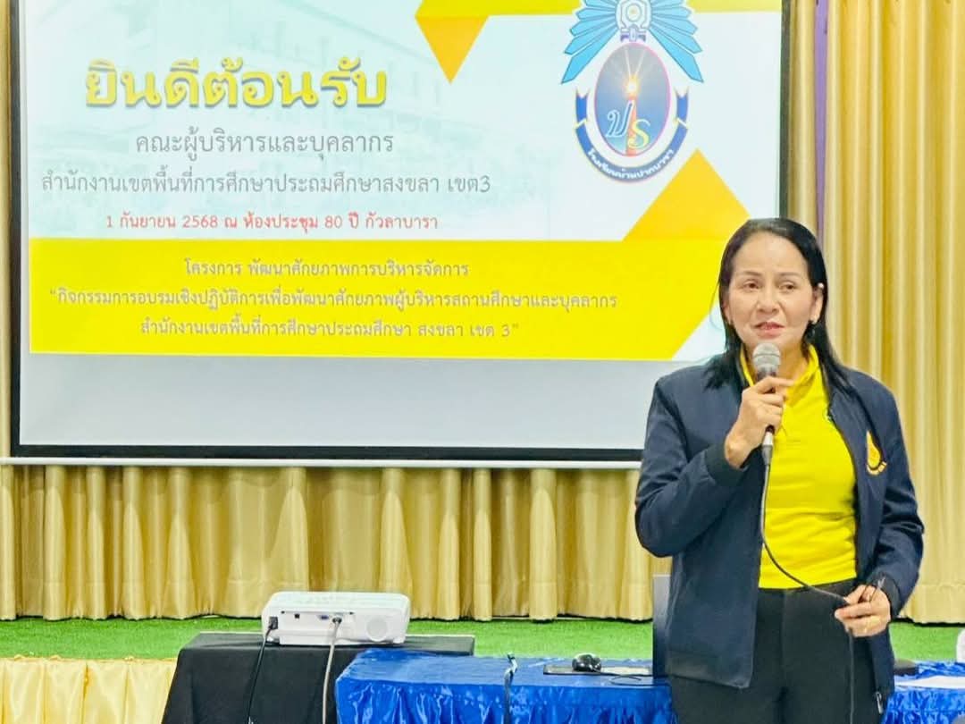 | วันที่ 1 กันยายน 2568 นายศังกร รักชูชื่น ผอ.สพป.สงขลา เขต 3 พร้อมด้วยนางสาวธัญชนก บรรยง รอง ผอ.สพป.สงขลา เขต 3 ผอ.กลุ่ม/หน่วย ผู้บริหารสถานศึกษาในสังกัดทุกโรง และบุคคลากร สพป.สงขลา เขต 3 ร่วมจัดโครงการพัฒนาศักยภาพการบริหารจัดการสำนักงานเขตพื้นที่การศึกษากิจกรรมการอบรมเชิงปฏิบัติการเพื่อพัฒนาศักยภาพผู้บริหารสถานศึกษา และบุคลากรสำนักงานเขตพื้นที่การศึกษาประถมศึกษาสงขลา เขต 3 ณ โรงเรียนสถานที่ศึกษาดูงาน รร.ในสังกัด สพป.สตูล ในอำเภอละงู จำนวน 5 โรงเรียน ได้แก่ รร.บ้านปากบารา รร.บ้านปากปิง รร.บ้านหาญ รร.ไทยรัฐวิทยา 111(บ้านทุ่งนางแก้ว) และ รร.บ้านเกาะยวน |