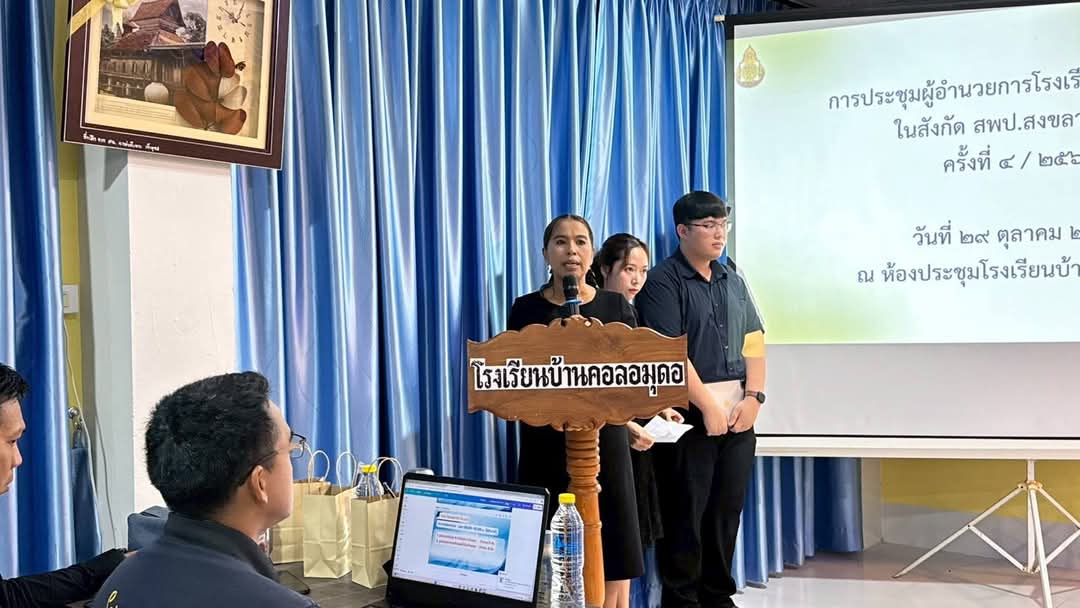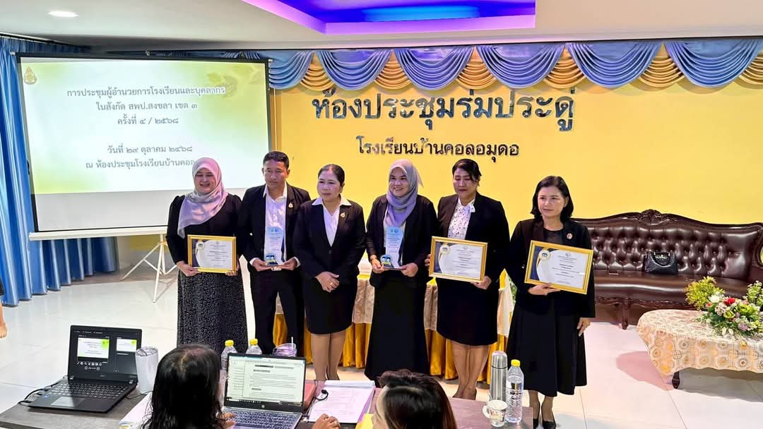 | วันที่ 29 ตุลาคม 2568 เวลา 08.30 น.- 16.30 น. นายศังกร รักชูชื่น ผอ.สพป.สงขลา เขต 3 มอบหมายให้นางอำภา เวชสารศรี รอง ผอ.สพป.สงขลา เขต 3 เป็นประธานการประชุมผู้อำนวยการโรงเรียนในสังกัด และบุคลากร ครั้งที่ 4/2568 ณ ห้องประชุม โรงเรียนบ้านคอลอมุดอ อ.สะบ้าย้อย จ.สงขลา โดยมีผู้เข้าร่วมประชุมเป็นผู้อำนวยการโรงเรียนในสังกัดอำเภอเทพา และอำเภอสะบ้าย้อย ศึกษานิเทศก์ที่รับผิดชอบอำเภอเทพา และอำเภอสะบ้าย้อย และบุคลากร สพป.สงขลา เขต 3 |