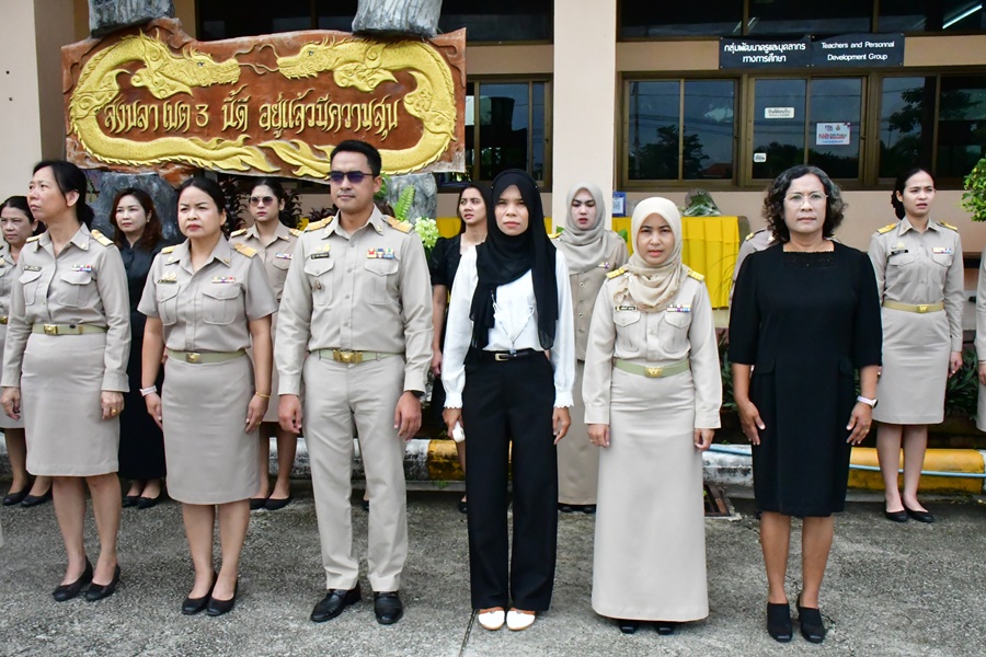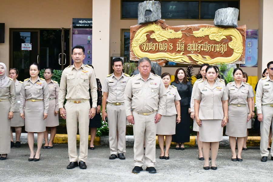 | วันที่ 27 ตุลาคม 2568 เวลา 08.30 น. นายศังกร รักชูชื่น ผอ.สพป.สงขลา เขต 3 พร้อมด้วยนางอำภา เวชสารศรีนายอัษฎาวุธ สุวัตถี รอง ผอ.สพป.สงขลา เขต 3 ผอ.กลุ่ม/หน่วย และบุคลากร สพป.สงขลา เขต 3 ร่วมทำกิจกรรมหน้าเสาธง เคารพธงชาติ ยืนสงบนิ่งถวายความอาลัย น้อมรำลึกในพระมหากรุณาธิคุณสมเด็จพระนางเจ้าสิริกิติ์ พระบรมราชินีนาถ พระบรมราชชนนีพันปีหลวง ร้องเพลงจำขึ้นใจ เพื่อส่งเสริมการแสดงถึงความจงรักภักดีต่อสถาบันพระมหากษัตริย์ เทิดทูนสถาบันสำคัญของชาติ ปลุกจิตสำนึก ค่านิยม อุดมการณ์ปกป้องสถาบันชาติ ศาสนา และพระมหากษัตริย์ เป็นแบบอย่างที่ดี ตระหนักและเห็นคุณค่าของความเป็นชาติ สร้างความรัก ความสามัคคีในหน่วยงาน สร้างวินัย และรักษาเอกลักษณ์ของชาติ กล่าวคำปฎิญญา สำนักงานเขตพื้นที่การศึกษาสุจริต โดยพร้อมเพรียงกัน รณรงค์ต่อต้านการทุจริต ปลุกจิตสำนึกการปฏิบัติตามนโยบายการไม่รับของขวัญ และของกำนันทุกชนิดจากการปฏิบัติหน้าที่ (No Gif Policy) ประจำปีงบประมาณ พ.ศ.2568 และแนวปฏิบัติ Do’s & Don’ts เพื่อลดความสับสนเกี่ยวกับพฤติกรรมสีเทา และเป็นแนวทางประพฤติปฏิบัติตนทางจริยธรรม ที่ สพป.สงขลา เขต 3 ได้จัดทำไว้ให้ถือปฏิบัติมาโดยตลอด ผอ.สพป.สงขลา เขต 3 พบปะบุคลากร แจ้งข้อราชการ ณ ลานหน้าเสาธง สพป.สงขลา เขต 3 อ.นาทวี จ.สงขลา |