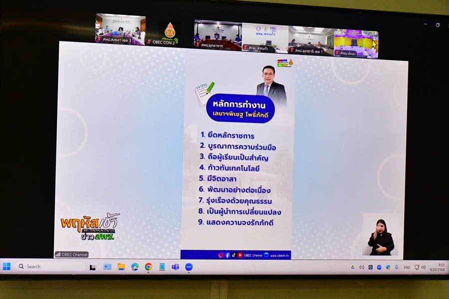 วันที่ 9 ตุลาคม 2568 เวลา 08.00 น. นายศังกร รักชูชื่น ผอ.สพป.สงขลา เขต 3 มอบหมายให้นางอำภา เวชสารศรี นางสาวธัญชนก บรรยง นายอัษฎาวุธ สุวัตถี รอง ผอ.สพป.สงขลา เขต 3 พร้อมด้วย ผอ.กลุ่ม/หน่วย และบุคลากร สพป.สงขลา เขต 3 ร่วมรับชมรายการ “พฤหัสเช้าข่าว สพฐ.” ซึ่งส่งสัญญาณจากส่วนกลาง สพฐ. เพื่อนำนโยบายลงสู่การปฏิบัติ ณ ห้องประชุมสันกาลาคีรี ชั้น 3 สพป.สงขลา เขต 3 อ.นาทวี จ.สงขลา โดยสัปดาห์นี้ พบกับ “พฤหัสเช้าข่าว สพฐ.” ครั้งที่ 40/2568 ช่วงที่ 3 เรื่องเล่าข่าว สพฐ. ท่านจะได้ พบกับ