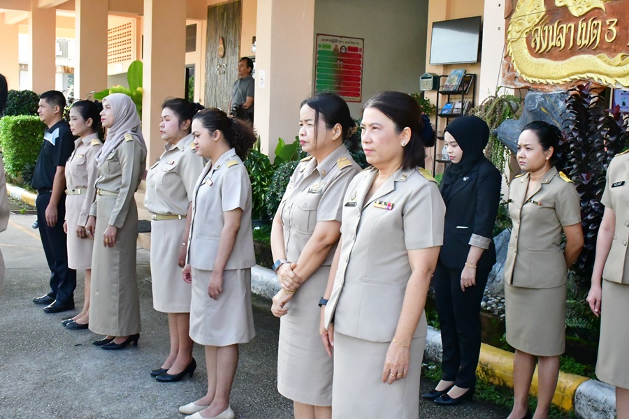 | วันที่ 17 พฤศจิกายน 2568 เวลา 08.30 น. นายศังกร รักชูชื่น ผอ.สพป.สงขลา เขต 3 มอบหมายให้นางอำภาเวชสารศรี นางสาวธัญชนก บรรยง รอง ผอ.สพป.สงขลา เขต 3 ผอ.กลุ่ม/หน่วย และบุคลากร สพป.สงขลา เขต 3 ร่วมทำกิจกรรมหน้าเสาธง เคารพธงชาติ ร้องเพลงจำขึ้นใจ เพื่อส่งเสริมการแสดงถึงความจงรักภักดีต่อสถาบันพระมหากษัตริย์ เทิดทูนสถาบันสำคัญของชาติ ปลุกจิตสำนึก ค่านิยม อุดมการณ์ปกป้องสถาบันชาติ ศาสนา และพระมหากษัตริย์ เป็นแบบอย่างที่ดี ตระหนักและเห็นคุณค่าของความเป็นชาติ สร้างความรัก ความสามัคคีในหน่วยงาน สร้างวินัย และรักษาเอกลักษณ์ของชาติ กล่าวคำปฎิญญา สำนักงานเขตพื้นที่การศึกษาสุจริต โดยพร้อมเพรียงกัน รณรงค์ต่อต้านการทุจริต ปลุกจิตสำนึกการปฏิบัติตามนโยบายการไม่รับของขวัญ และของกำนันทุกชนิดจากการปฏิบัติหน้าที่ (No Gif Policy) ประจำปีงบประมาณ พ.ศ.2568 และแนวปฏิบัติ Do’s & Don’ts เพื่อลดความสับสนเกี่ยวกับพฤติกรรมสีเทา และเป็นแนวทางประพฤติปฏิบัติตนทางจริยธรรม ที่ สพป.สงขลา เขต 3 ได้จัดทำไว้ให้ถือปฏิบัติมาโดยตลอด รอง ผอ.สพป.สงขลา เขต 3 พบปะบุคลากร แจ้งข้อราชการ ณ ลานหน้าเสาธง สพป.สงขลา เขต 3 อ.นาทวี จ.สงขลา |