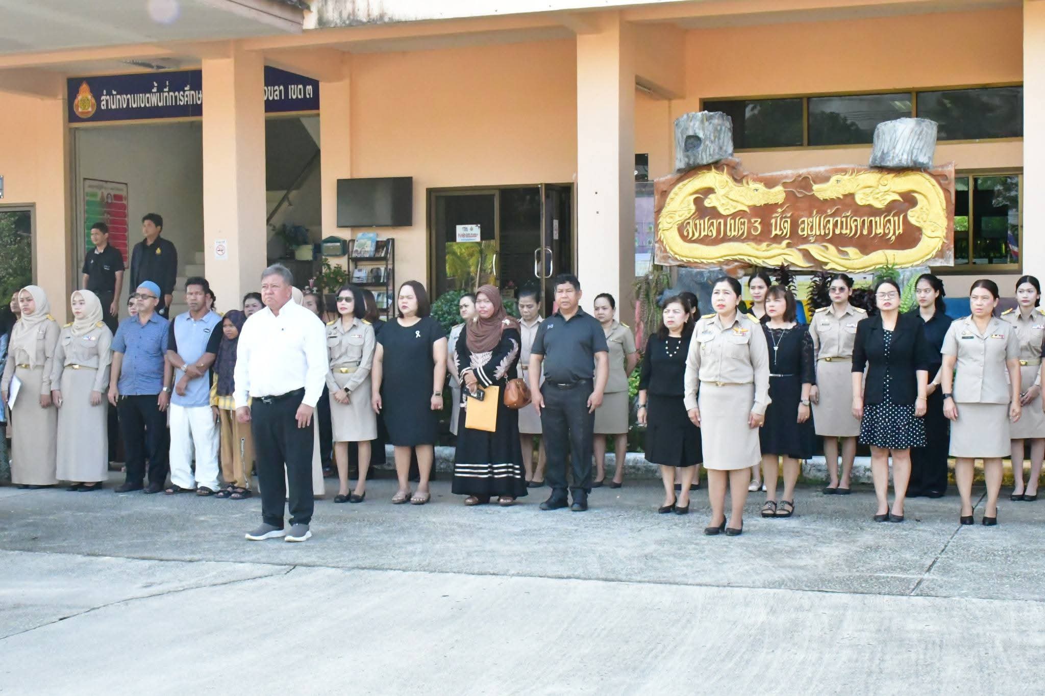 | วันที่ 1 ธันวาคม 2568 เวลา 08.30 น. นายศังกร รักชูชื่น ผอ.สพป.สงขลา เขต 3 พร้อมด้วยนางอำภาเวชสารศรี รอง ผอ.สพป.สงขลา เขต 3 ผอ.กลุ่ม/หน่วย และบุคลากร สพป.สงขลา เขต 3 ร่วมทำกิจกรรมหน้าเสาธง เคารพธงชาติ ร้องเพลงจำขึ้นใจ เพื่อส่งเสริมการแสดงถึงความจงรักภักดีต่อสถาบันพระมหากษัตริย์ เทิดทูนสถาบันสำคัญของชาติ ปลุกจิตสำนึก ค่านิยม อุดมการณ์ปกป้องสถาบันชาติ ศาสนา และพระมหากษัตริย์ เป็นแบบอย่างที่ดี ตระหนักและเห็นคุณค่าของความเป็นชาติ สร้างความรัก ความสามัคคีในหน่วยงาน สร้างวินัย และรักษาเอกลักษณ์ของชาติ กล่าวคำปฎิญญา สำนักงานเขตพื้นที่การศึกษาสุจริต โดยพร้อมเพรียงกัน รณรงค์ต่อต้านการทุจริต ปลุกจิตสำนึกการปฏิบัติตามนโยบายการไม่รับของขวัญ และของกำนันทุกชนิดจากการปฏิบัติหน้าที่ (No Gif Policy) และแนวปฏิบัติ Do’s & Don’ts เพื่อลดความสับสนเกี่ยวกับพฤติกรรมสีเทา และเป็นแนวทางประพฤติปฏิบัติตนทางจริยธรรม ที่ สพป.สงขลา เขต 3 ได้จัดทำไว้ให้ถือปฏิบัติมาโดยตลอด ผอ.สพป.สงขลา เขต 3 พบปะบุคลากร แจ้งข้อราชการ ณ ลานหน้าเสาธง สพป.สงขลา เขต 3 อ.นาทวี จ.สงขลา |