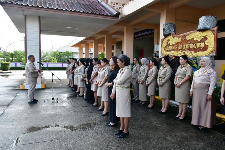 | วันที่ 15 ธันวาคม 2568 เวลา 08.30 น. นายศังกร รักชูชื่น ผอ.สพป.สงขลา เขต 3 พร้อมด้วยนางอำภาเวชสารศรี รอง ผอ.สพป.สงขลา เขต 3 ผอ.กลุ่ม/หน่วย และบุคลากร สพป.สงขลา เขต 3 ร่วมทำกิจกรรมหน้าเสาธง เคารพธงชาติ ร้องเพลงจำขึ้นใจ เพื่อส่งเสริมการแสดงถึงความจงรักภักดีต่อสถาบันพระมหากษัตริย์ เทิดทูนสถาบันสำคัญของชาติ ปลุกจิตสำนึก ค่านิยม อุดมการณ์ปกป้องสถาบันชาติ ศาสนา และพระมหากษัตริย์ เป็นแบบอย่างที่ดี ตระหนักและเห็นคุณค่าของความเป็นชาติ สร้างความรัก ความสามัคคีในหน่วยงาน สร้างวินัย และรักษาเอกลักษณ์ของชาติ กล่าวคำปฎิญญา สำนักงานเขตพื้นที่การศึกษาสุจริต โดยพร้อมเพรียงกัน รณรงค์ต่อต้านการทุจริต ปลุกจิตสำนึกการปฏิบัติตามนโยบายการไม่รับของขวัญ และของกำนัลทุกชนิดจากการปฏิบัติหน้าที่ (No Gif Policy) และแนวปฏิบัติ Do’s & Don’ts เพื่อลดความสับสนเกี่ยวกับพฤติกรรมสีเทา และเป็นแนวทางประพฤติปฏิบัติตนทางจริยธรรม ที่ สพป.สงขลา เขต 3 ได้จัดทำไว้ให้ถือปฏิบัติมาโดยตลอด ผอ.สพป.สงขลา เขต 3 พบปะบุคลากร แจ้งข้อราชการ ณ ลานหน้าเสาธง สพป.สงขลา เขต 3 อ.นาทวี จ.สงขลา |