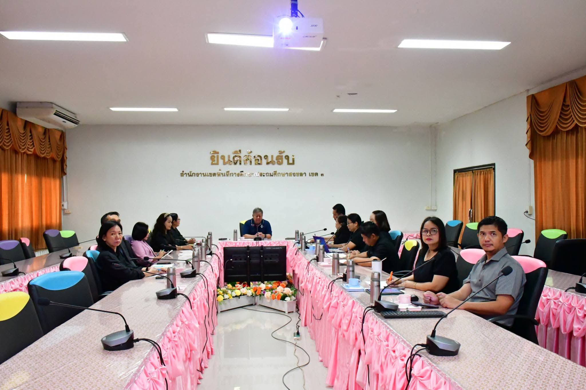 | วันที่ 4 ธันวาคม 2568 เวลา 08.00 น. นายศังกร รักชูชื่น ผอ.สพป.สงขลา เขต 3 พร้อมด้วยนางอำภา เวชสารศรี นายอัษฎาวุธ สุวัตถี รอง ผอ.สพป.สงขลา เขต 3 ผอ.กลุ่ม/หน่วย และบุคลากร สพป.สงขลา เขต 3 ร่วมรับชมรายการ “พฤหัสเช้าข่าว สพฐ.” ซึ่งส่งสัญญาณจากส่วนกลาง สพฐ. เพื่อนำนโยบายลงสู่การปฏิบัติ ณ ห้องประชุมสร้อยสวรรค์ ชั้น 3 สพป.สงขลา เขต 3 อ.นาทวี จ.สงขลา โดยสัปดาห์นี้ พบกับ “พฤหัสเช้าข่าว สพฐ.” ครั้งที่ 47/2568 ช่วงที่ 3 เรื่องเล่าข่าว สพฐ.ท่านจะได้ พบกับ - สารคดีเฉลิมพระเกียรติแม่ของแผ่นดิน ตอนที่ ๙ ผ้าไหมไทย สายใยรักจากพระราชินี - กบข.ใกล้ครู ตอน อนาคตเกษียณ ออกแบบได้ด้วย My Digital Twins - ข่าวติดเทรนด์ - พิธีปล่อยขบวนคาราวาน รวมน้ำใจ ช่วยผู้ประสบภัย สพฐ. และประชุม ผอ.กลุ่ม/หน่วย เพื่อแจ้งข้อราชการ ติดตามงาน โครงการต่างๆ |