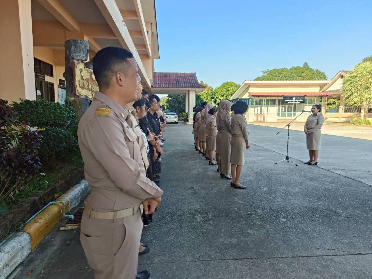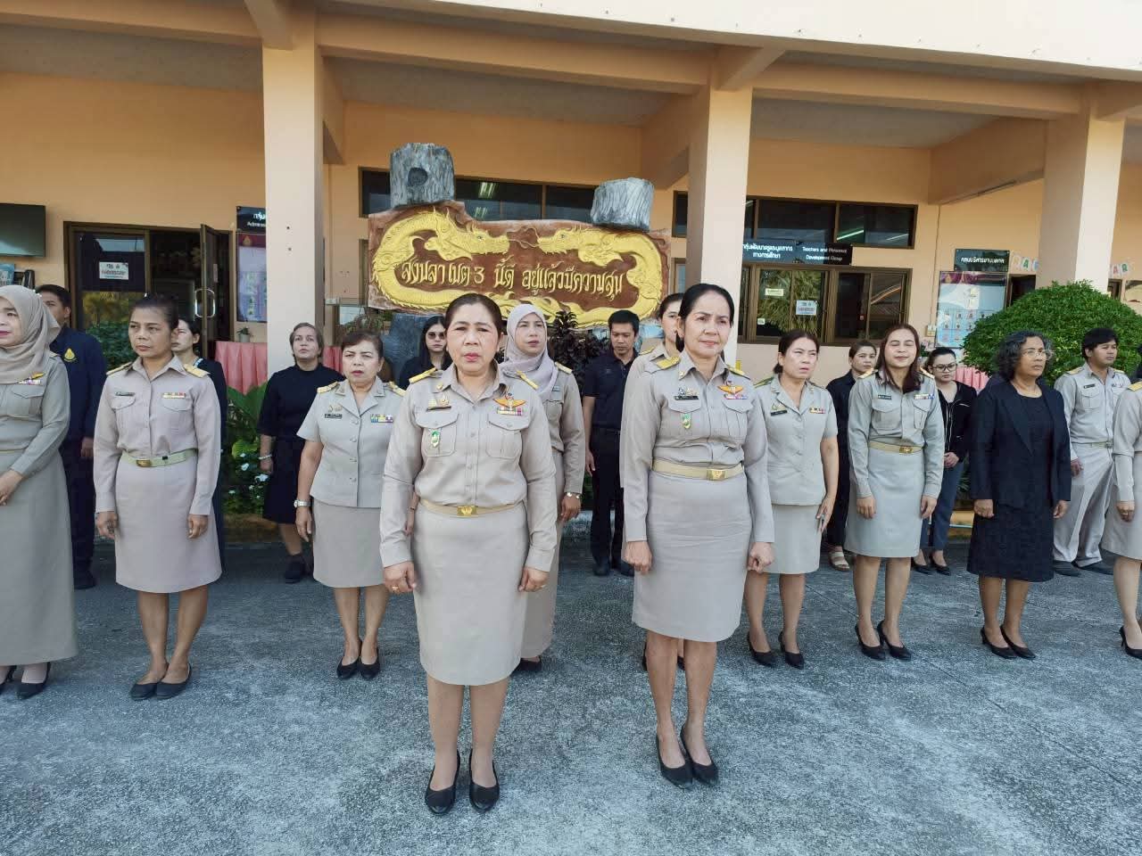 | วันที่ 11 มกราคม 2569 เวลา 08.30 น. นายศังกร รักชูชื่น ผอ.สพป.สงขลา เขต 3 มอบหมายให้นางอำภา เวชสารศรี นางสาวธัญชนก บรรยง รอง ผอ.สพป.สงขลา เขต 3 พร้อมด้วย ผอ.กลุ่ม/หน่วย และบุคลากร สพป.สงขลา เขต 3 ร่วมทำกิจกรรมหน้าเสาธง เคารพธงชาติ ร้องเพลงจำขึ้นใจ เพื่อส่งเสริมการแสดงถึงความจงรักภักดีต่อสถาบันพระมหากษัตริย์ เทิดทูนสถาบันสำคัญของชาติ ปลุกจิตสำนึก ค่านิยม อุดมการณ์ปกป้องสถาบันชาติ ศาสนา และพระมหากษัตริย์ เป็นแบบอย่างที่ดี ตระหนักและเห็นคุณค่าของความเป็นชาติ สร้างความรัก ความสามัคคีในหน่วยงาน สร้างวินัย และรักษาเอกลักษณ์ของชาติ กล่าวคำปฎิญญา สำนักงานเขตพื้นที่การศึกษาสุจริต โดยพร้อมเพรียงกัน รณรงค์ต่อต้านการทุจริต ปลุกจิตสำนึกการปฏิบัติตามนโยบายการไม่รับของขวัญ และของกำนัลทุกชนิดจากการปฏิบัติหน้าที่ (No Gif Policy) และแนวปฏิบัติ Do’s & Don’ts เพื่อลดความสับสนเกี่ยวกับพฤติกรรมสีเทา และเป็นแนวทางประพฤติปฏิบัติตนทางจริยธรรม ที่ สพป.สงขลา เขต 3 ได้จัดทำไว้ให้ถือปฏิบัติมาโดยตลอด รอง ผอ.สพป.สงขลา เขต 3 พบปะบุคลากร แจ้งข้อราชการ ณ ลานหน้าเสาธง สพป.สงขลา เขต 3 อ.นาทวี จ.สงขลา |