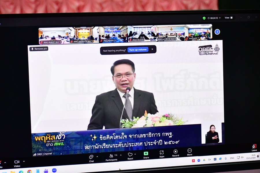วันที่ 15 มกราคม 2569 เวลา 08.00 น. นายศังกร รักชูชื่น ผอ.สพป.สงขลา เขต 3 มอบหมายให้ นางอำภา เวชสารศรี นางสาวธัญชนก บรรยง นายอัษฎาวุธ สุวัตถี รอง ผอ.สพป.สงขลา เขต 3 ผอ.กลุ่ม/หน่วย และบุคลากร สพป.สงขลา เขต 3 ร่วมรับชมรายการ “พฤหัสเช้าข่าว สพฐ.” ซึ่งส่งสัญญาณจากส่วนกลาง สพฐ. เพื่อนำนโยบายลงสู่การปฏิบัติ ณ ห้องประชุมสร้อยสวรรค์ ชั้น 3 สพป.สงขลา เขต 3 อ.นาทวี จ.สงขลา โดยสัปดาห์นี้ พบกับ “พฤหัสเช้าข่าว สพฐ.” ครั้งที่ 2/2569 ช่วงที่ 3 เรื่องเล่าข่าว สพฐ. ช่วงที่ 3 เรื่องเล่าข่าว สพฐ. ท่านจะได้ พบกับ