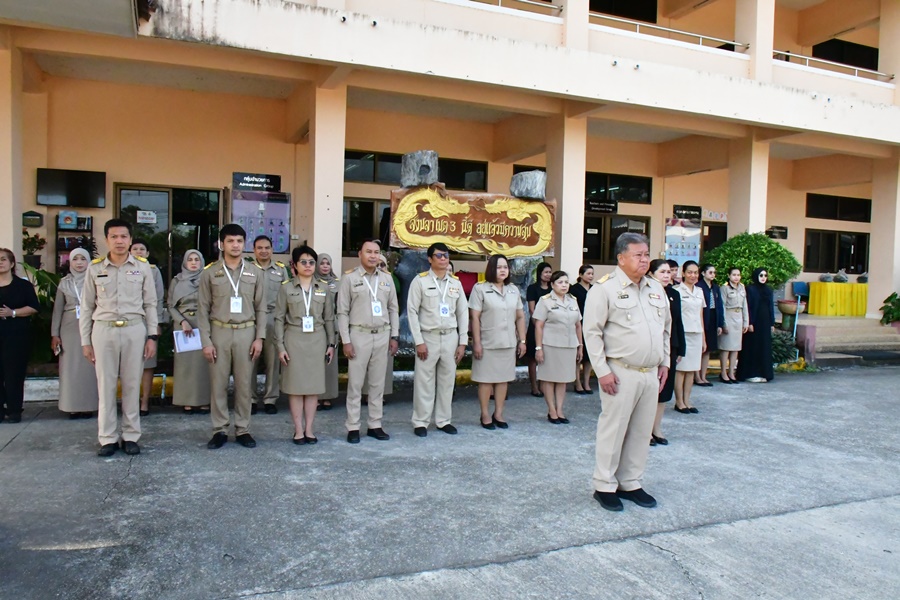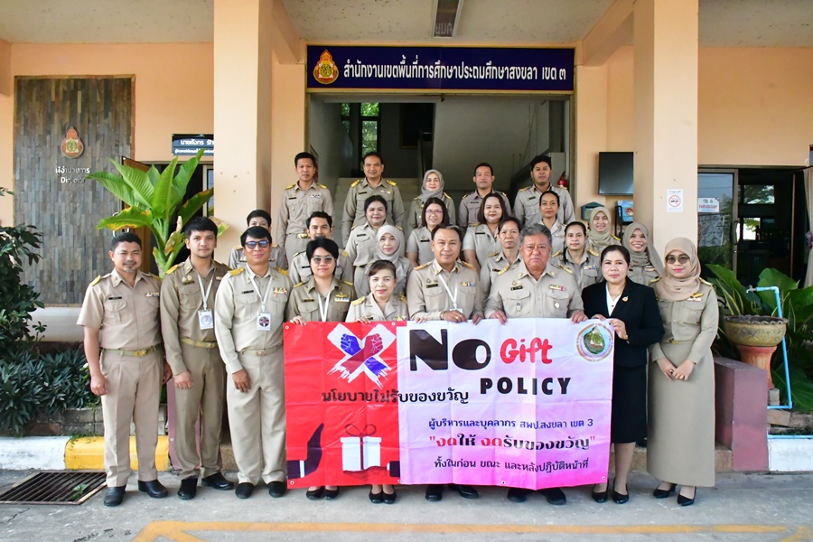 | วันที่ 23 กุมภาพันธ์ 2569 เวลา 08.30 น. นายศังกร รักชูชื่น ผอ.สพป.สงขลา เขต 3 พร้อมด้วยนางอำภา เวชสารศรี รอง ผอ.สพป.สงขลา เขต 3 ผอ.กลุ่ม/หน่วย และบุคลากร สพป.สงขลา เขต 3 ร่วมทำกิจกรรมหน้าเสาธง เคารพธงชาติ ร้องเพลงจำขึ้นใจ เพื่อส่งเสริมการแสดงถึงความจงรักภักดีต่อสถาบันพระมหากษัตริย์ เทิดทูนสถาบันสำคัญของชาติ ปลุกจิตสำนึก ค่านิยม อุดมการณ์ปกป้องสถาบันชาติ ศาสนา และพระมหากษัตริย์ เป็นแบบอย่างที่ดี ตระหนักและเห็นคุณค่าของความเป็นชาติ สร้างความรัก ความสามัคคีในหน่วยงาน สร้างวินัย และรักษาเอกลักษณ์ของชาติ กล่าวคำปฎิญญา สำนักงานเขตพื้นที่การศึกษาสุจริต โดยพร้อมเพรียงกัน รณรงค์ต่อต้านการทุจริต ปลุกจิตสำนึกการปฏิบัติตามนโยบายการไม่รับของขวัญ และของกำนัลทุกชนิดจากการปฏิบัติหน้าที่ (No Gif Policy) และแนวปฏิบัติ Do’s & Don’ts เพื่อลดความสับสนเกี่ยวกับพฤติกรรมสีเทา และเป็นแนวทางประพฤติปฏิบัติตนทางจริยธรรม ที่ สพป.สงขลา เขต 3 ได้จัดทำไว้ให้ถือปฏิบัติมาโดยตลอด ผอ.สพป.สงขลา เขต 3 พบปะบุคลากร แจ้งข้อราชการ ณ ลานหน้าเสาธง สพป.สงขลา เขต 3 อ.นาทวี จ.สงขลา |