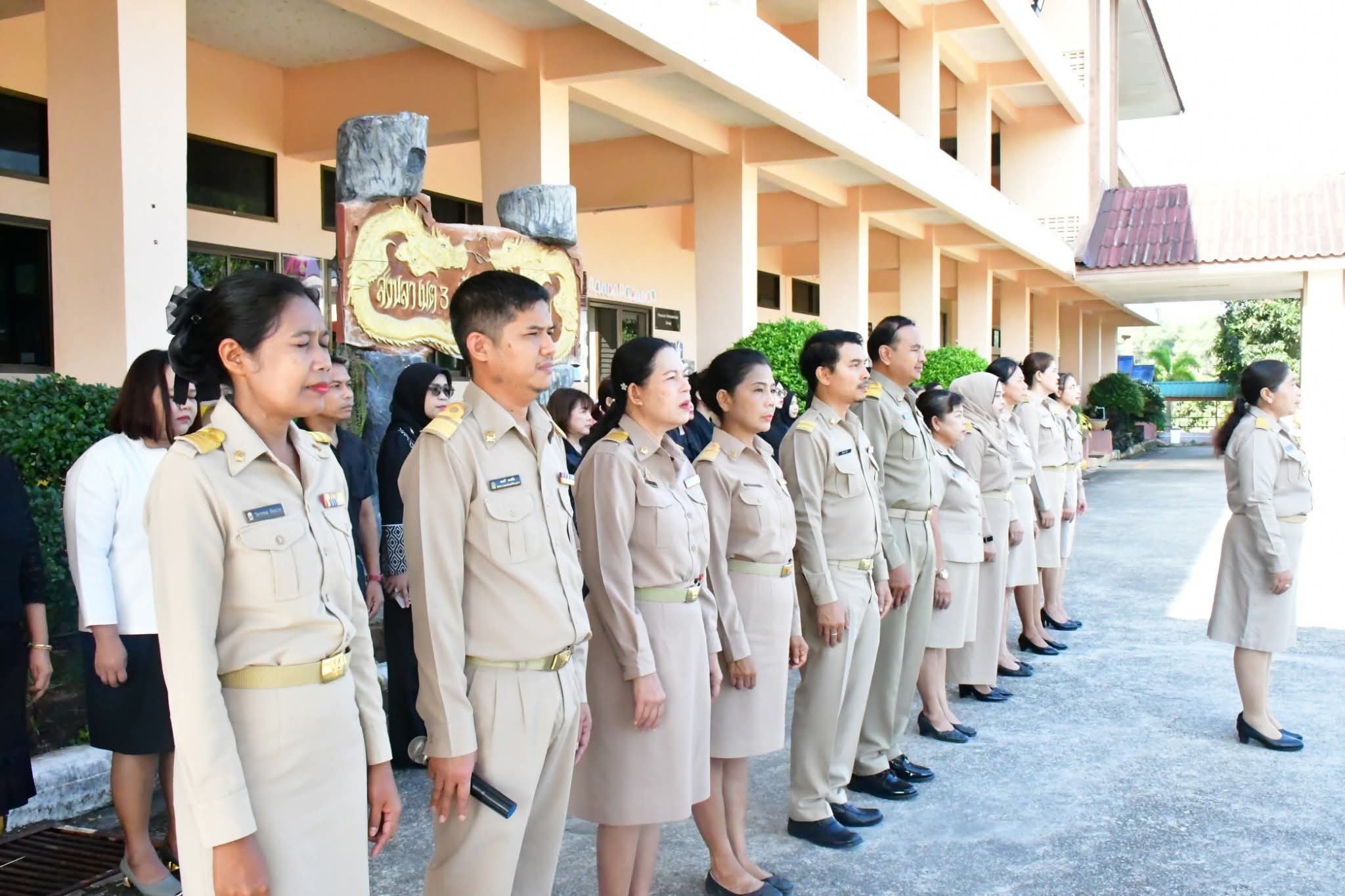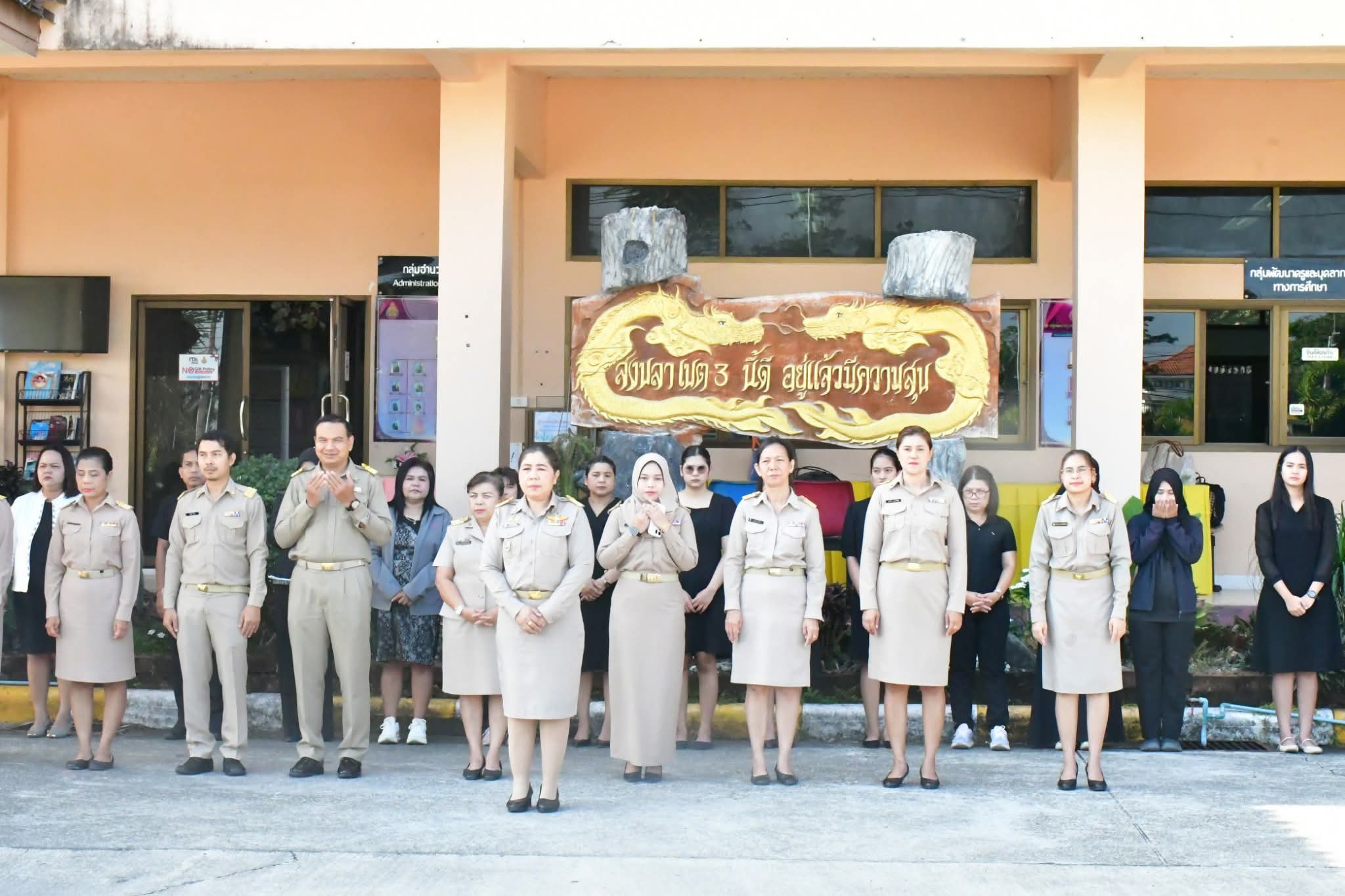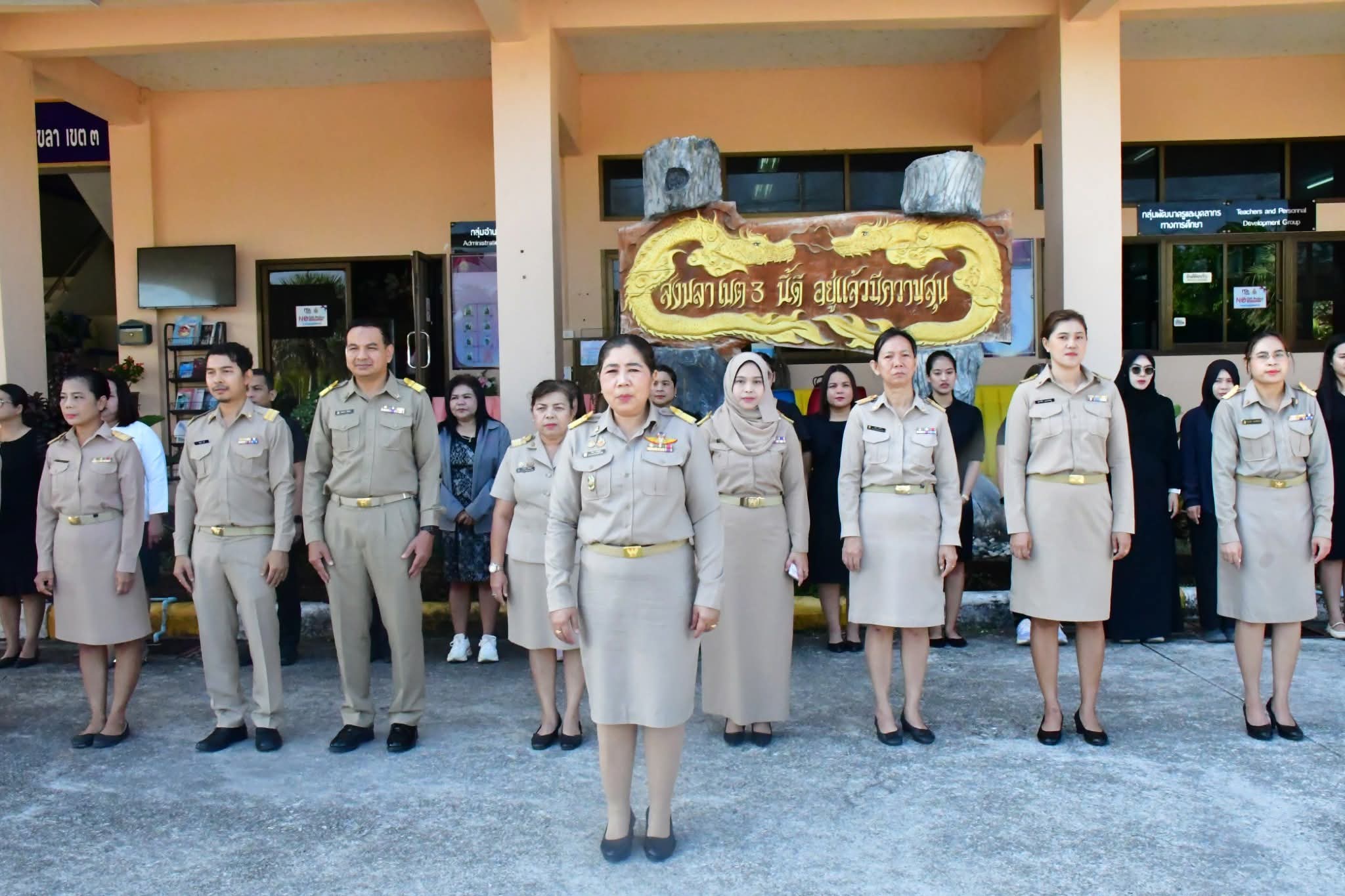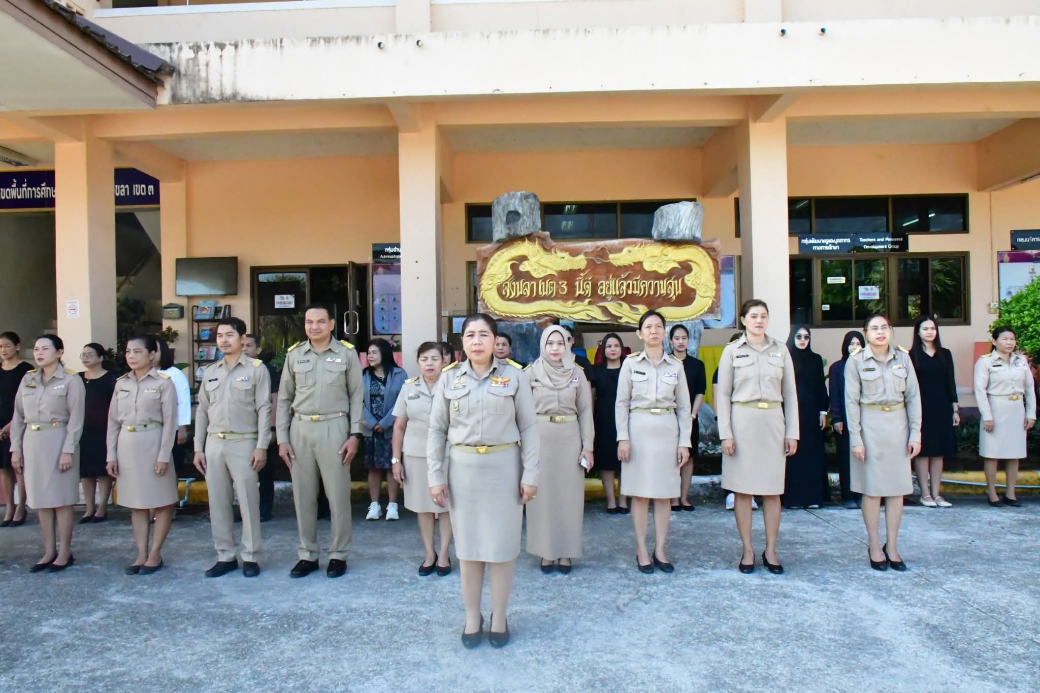 | วันที่ 16 มีนาคม 2569 เวลา 08.30 น. นายศังกร รักชูชื่น ผอ.สพป.สงขลา เขต 3 มอบหมายให้นางอำภา เวชสารศรี รอง ผอ.สพป.สงขลา เขต 3 ผอ.กลุ่ม/หน่วย และบุคลากร สพป.สงขลา เขต 3 ร่วมทำกิจกรรมหน้าเสาธง เคารพธงชาติ ร้องเพลงจำขึ้นใจ เพื่อส่งเสริมการแสดงถึงความจงรักภักดีต่อสถาบันพระมหากษัตริย์ เทิดทูนสถาบันสำคัญของชาติ ปลุกจิตสำนึก ค่านิยม อุดมการณ์ปกป้องสถาบันชาติ ศาสนา และพระมหากษัตริย์ เป็นแบบอย่างที่ดี ตระหนักและเห็นคุณค่าของความเป็นชาติ สร้างความรัก ความสามัคคีในหน่วยงาน สร้างวินัย และรักษาเอกลักษณ์ของชาติ กล่าวคำปฎิญญา สำนักงานเขตพื้นที่การศึกษาสุจริต โดยพร้อมเพรียงกัน รณรงค์ต่อต้านการทุจริต ปลุกจิตสำนึกการปฏิบัติตามนโยบายการไม่รับของขวัญ และของกำนัลทุกชนิดจากการปฏิบัติหน้าที่ (No Gif Policy) และแนวปฏิบัติ Do’s & Don’ts เพื่อลดความสับสนเกี่ยวกับพฤติกรรมสีเทา และเป็นแนวทางประพฤติปฏิบัติตนทางจริยธรรม ที่ สพป.สงขลา เขต 3 ได้จัดทำไว้ให้ถือปฏิบัติมาโดยตลอด รอง ผอ.สพป.สงขลา เขต 3 พบปะบุคลากร แจ้งข้อราชการ ณ ลานหน้าเสาธง สพป.สงขลา เขต 3 อ.นาทวี จ.สงขลา |